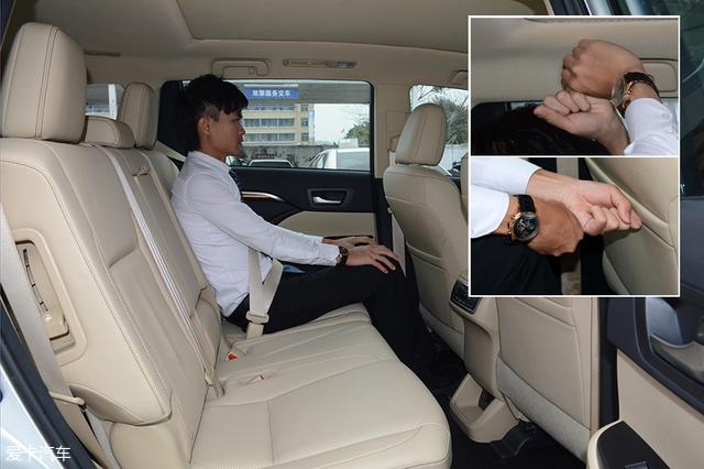前排座椅保持不变,体验者进入第二排,此时头部空间和腿部空间均有两拳的距离。