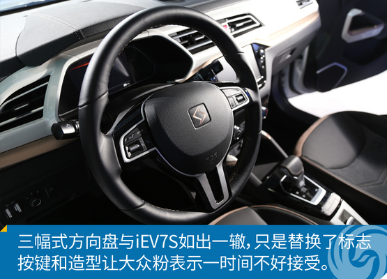内饰方面,采用了类似江淮iEV7的整体布局,内饰颇具时尚气息,内饰颜色搭配很年轻化国际化,多重配色看起来没有一丝的不协调。不过在材质方面就差强人意了,硬质塑料覆盖了绝大多数的中控台面积。换挡采用了传统造型的换挡杆,设计上更加“大众”化。据悉,新车将配备无钥匙进入、一键启动、8寸中控触屏、高清7寸液晶组合仪表、360度泊车辅助、盲点监控、4G无线网络连接、充电口盖一键开启、语音控制系统和远程遥控及智能净化系统等。