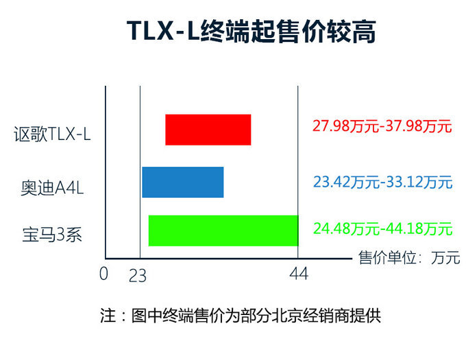 另外一款国产车型TLX-L在上市之初备受期待,国产后选择加长,更符合国内消费者的购车需求,可市场表现却不尽如人意,单月仅能售出新车100辆左右,今年累计销量为600辆。销量的低迷跟价格还是有密不可分的关系,TLX-L的终端起售价比品牌力更强的奥德A4L、宝马3系还要高3万元-4万元。在目前国内豪华车市场当中,讴歌品牌尚未进入第一、二阵营内,品牌定位和终端售价没有形成正比,制约了品牌一定的发展。