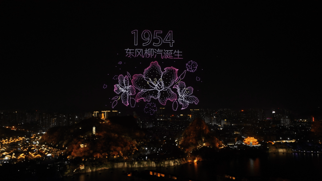当暮色彻底漫过古镇,柳州最大规模的无人机编队骤然升空,3500架无人机集结成阵,以天为幕、以光为笔,依次点亮柳宗元、风雨桥、文庙等柳州文化符号,最终聚焦1954年东风柳汽诞生的坐标与“乘龙”“风行”品牌标识。这场夜空表演,是“乘龙行天下”的壮志与“心怀星海 共赴美好”的温暖交织,诉说着品牌与用户的深厚情谊,为盛会添上浪漫震撼的底色。